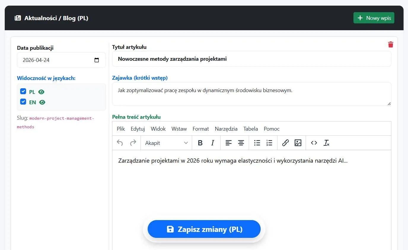 Pełne zarządzanie treścią bez dotykania kodu, prosto z intuicyjnego panelu: